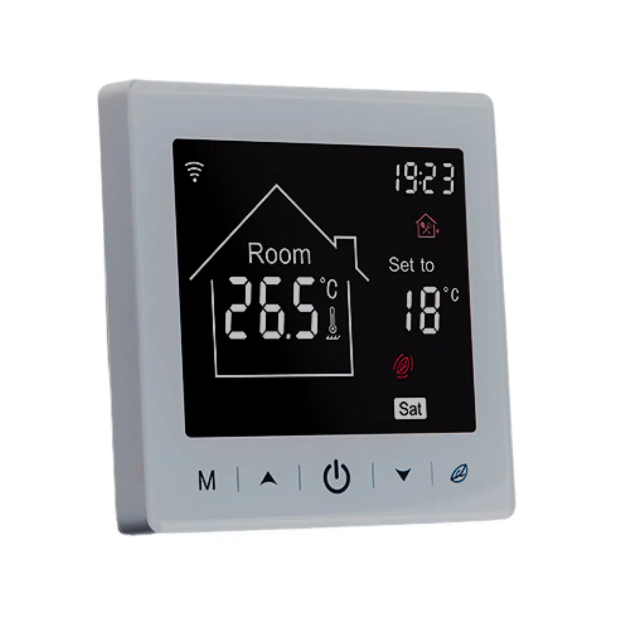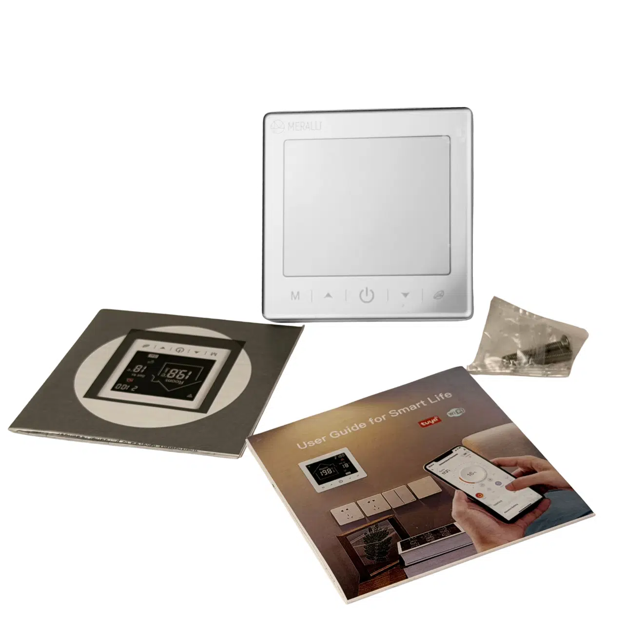 MERALLI M2, elektrikli yerden ısıtma sistemleri için tasarlanmış yeni nesil akıllı termostattır. Geniş 4.3” TFT dokunmatik ekranı, modern tasarımı ve Tuya entegrasyonu sayesinde hem şık hem de akıllı bir çözüm sunar.
